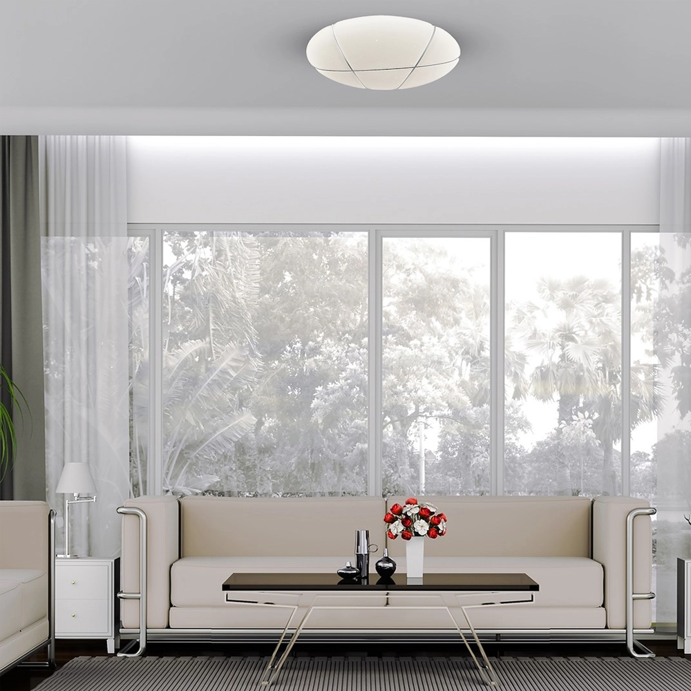 - Imponujący rozmiar i design: Średnica 49 cm sprawia, że plafon wygląda okazale nawet w dużych pomieszczeniach. Połączenie białego tworzywa z metalowymi akcentami pasuje do wnętrz nowoczesnych, glamour oraz minimalistycznych.
