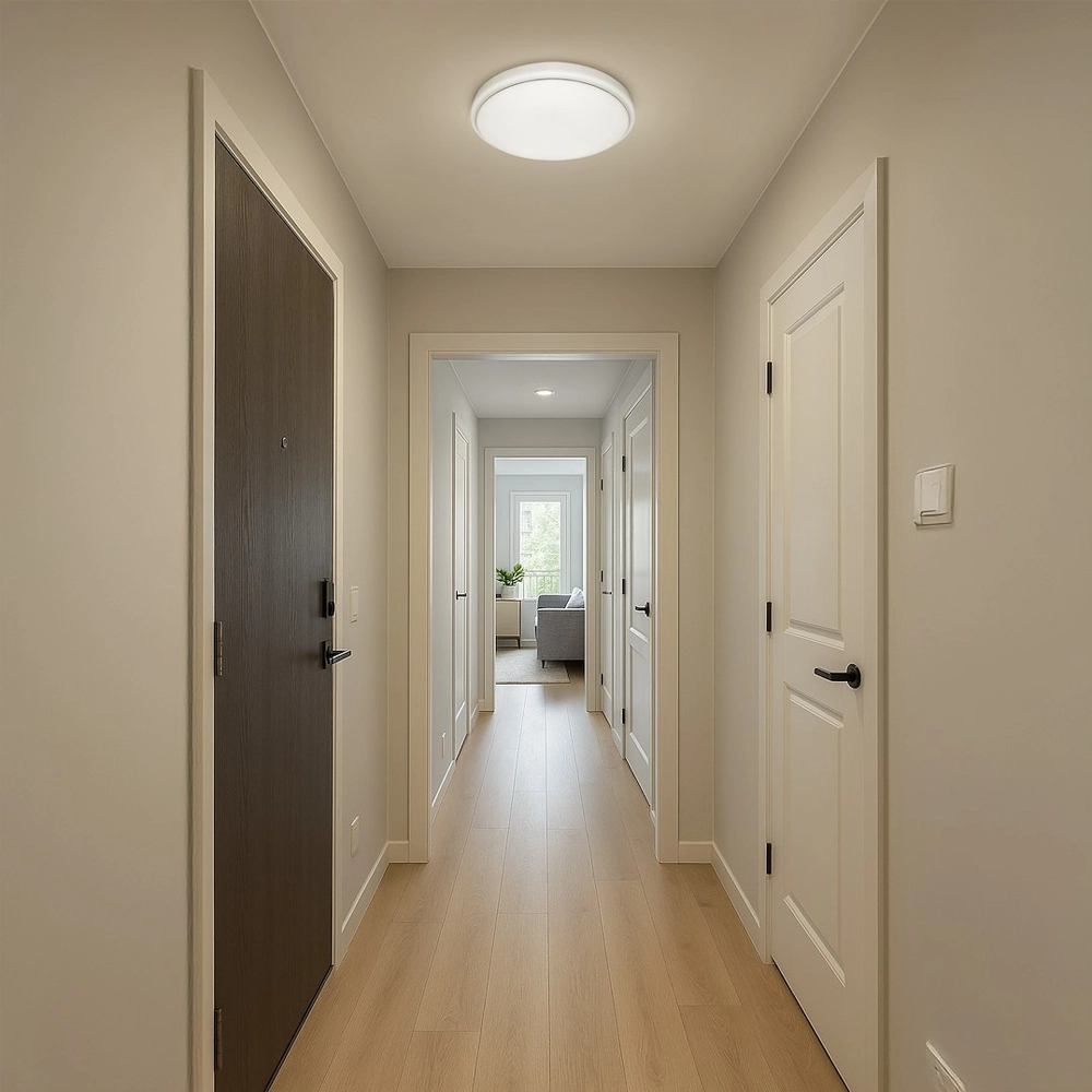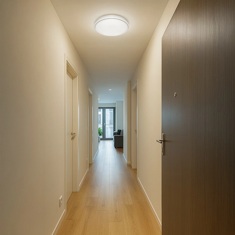 - Reprezentacyjny Salon: Średnica 390 mm sprawia, że plafon wygląda okazale i proporcjonalnie w pokoju dziennym. Trzy żarówki LED zapewniają wystarczającą moc, by rozjaśnić całą przestrzeń podczas wieczornych spotkań.