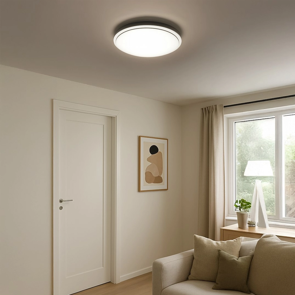 - Nowoczesny Akcent – Czarna Obręcz: To detal, który definiuje styl Twojego wnętrza. Czarny pierścień sprawia, że lampa wygląda luksusowo i idealnie pasuje do stylu loftowego, industrialnego oraz skandynawskiego.