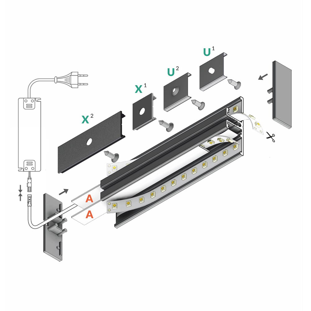 Wszelkie dostępne akcesoria do profili led (zaślepki, mocowania, uchwyty, łączniki, zawiesia itp.) dostępne są w zakładce "Produkty powiązane" oraz kategorii "Akcesoria do profili LED"
