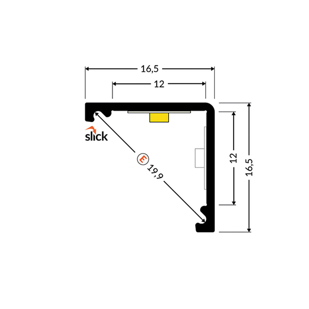 Kątowy profil aluminiowy LED CABI12 DUO wykonany z aluminium malowanego proszkowo w dowolnym kolorze z palety barw RAL, przeznaczony w głównej mierze do oświetlenia wnętrza gablot czy wnęk (w pionie lub poziomie). Sprawdzi się także efektownie jako oświetlenie meblowe. Doskonały jako oświetlenie akcentujące i dekoracyjne. Bardzo ważną i istotną zaletą w listwie narożnikowej LED CABI12 DUO jest fakt, iż konstrukcja profilu pozwala na zastosowanie dwóch taśm LED o maksymalnej szerokości 12mm dla każdej.