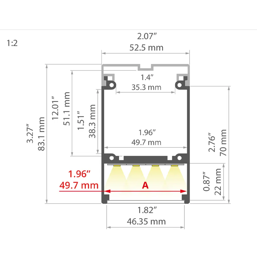 | Pasujące taśmy LED (max) | 49,7 mm |