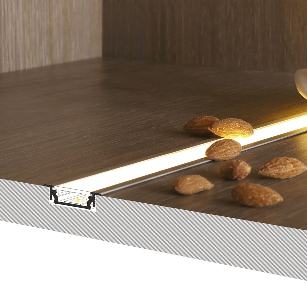 Wpustowy profil aluminiowy LED GROOVE14 wykonany z aluminium anodowanego. Listwa aluminiowa GROOVE14 dzięki swym niewielkim rozmiarom doskonale sprawdzi się do zastosowania jako oświetlenie meblowe, ale również do wykorzystania we wszelkich zabudowach lub aranżacjach architektonicznych. Doskonały jako oświetlenie akcentujące i dekoracyjne. Niewątpliwą zaletą listwy aluminiowej GROOVE14 jest fakt, iż obszar korytka, które znajduje się poza powierzchnią montażową jest bardzo niewielki - co z pewnością ma duże znaczenie estetyczne.