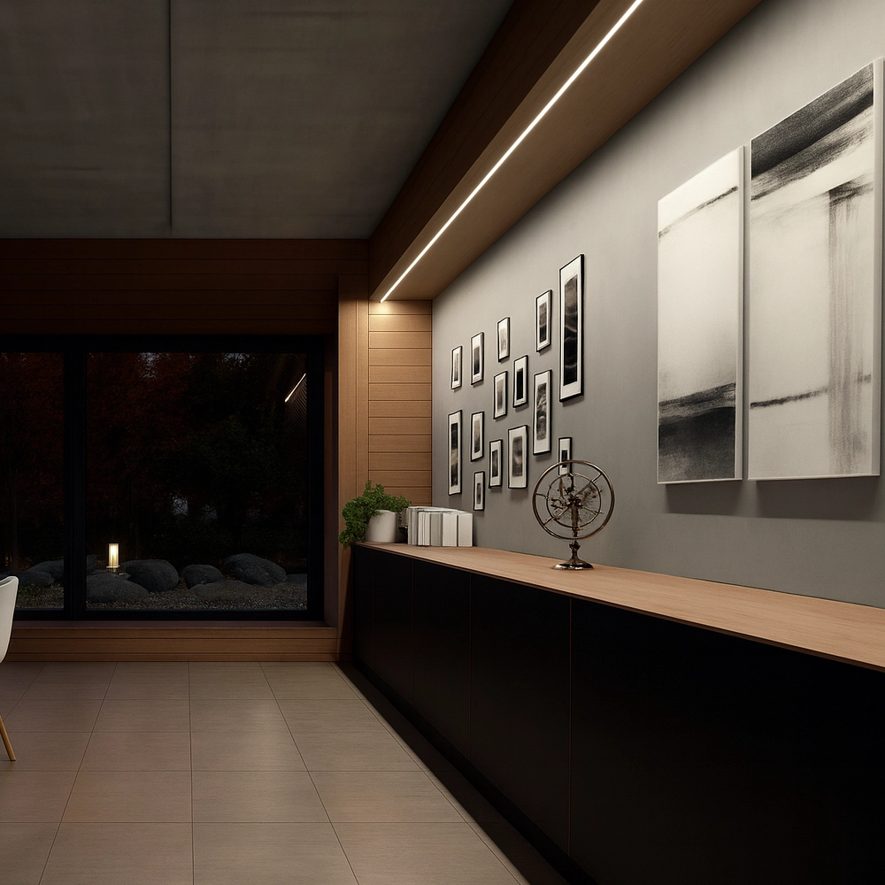 HOOD14 pełni również funkcję praktyczną – skutecznie odprowadza ciepło generowane przez taśmę LED, chroniąc ją przed przegrzaniem i uszkodzeniami. W profilu można zamontować taśmę LED o maksymalnej szerokości 14 mm, co daje szerokie możliwości doboru źródła światła. W połączeniu z taśmą COB tworzy efekt ciągłego światła, bez widocznych punktów diodowych. Dzięki temu profil sprawdza się w nowoczesnych mieszkaniach, biurach, hotelach i przestrzeniach komercyjnych, podkreślając ich elegancki charakter.