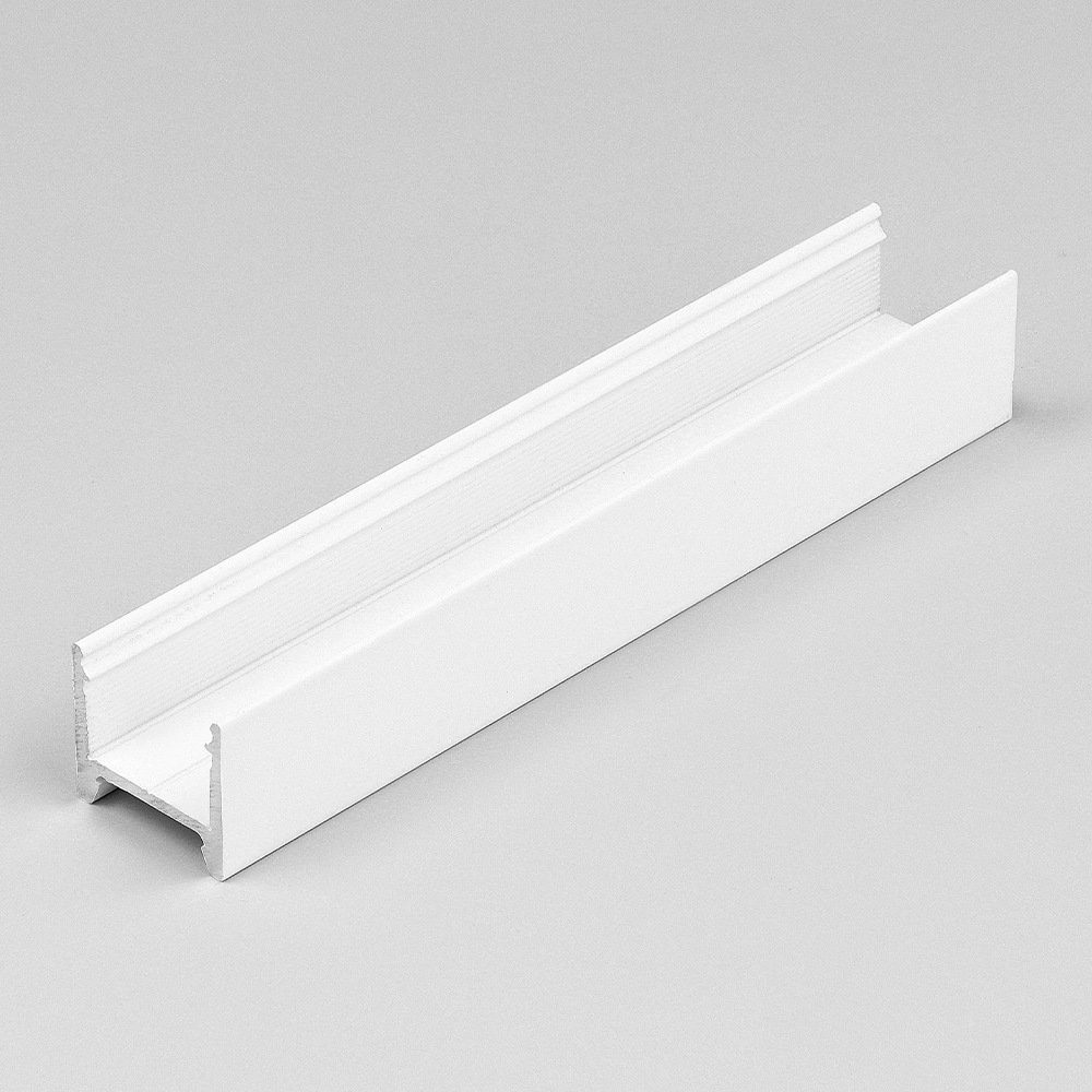 Profil aluminiowy HOOD14 to propozycja dla osób ceniących prostotę i nowoczesne wzornictwo. Jego geometryczna budowa, oparta na wyraźnych proporcjach i gładkich powierzchniach, wprowadza do wnętrza harmonię oraz elegancję. Charakterystyczny klosz, który zachodzi na krawędzie profilu, nadaje całości oryginalny charakter i sprawia, że nazwa HOOD14 nawiązuje do „daszka” lub „kaptura”.