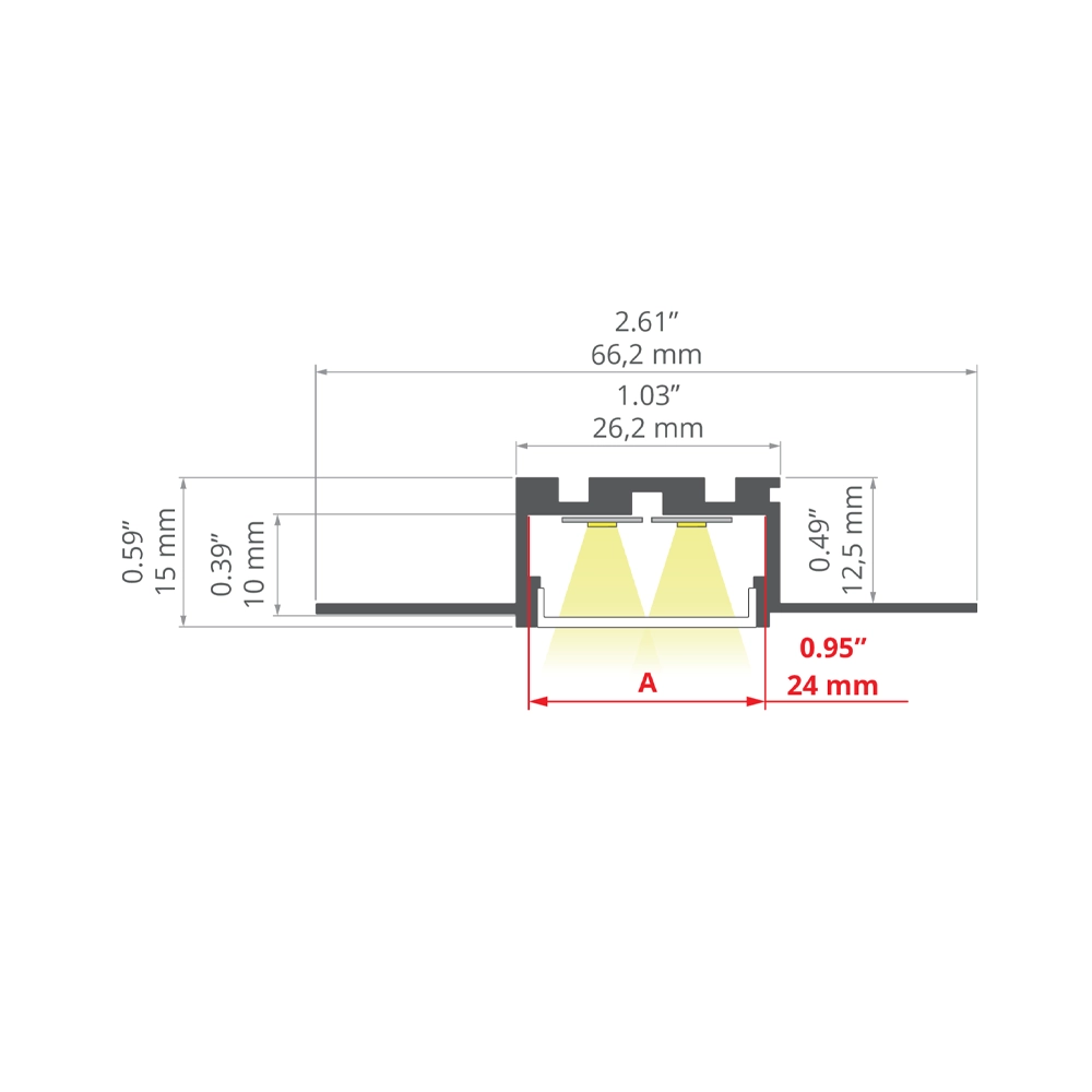 - możliwość wklejenia taśm LED do maksymalnej szerokości: 24 mm