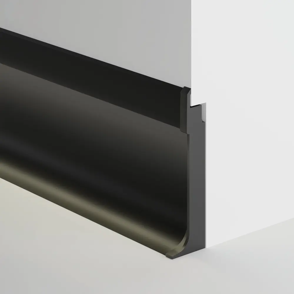 Przypodłogowy profil aluminiowy LED OLIS-K w czarnym anodowanym kolorze, wykonany przez polską firmę KLUŚ z aluminium anodowanego, o podwyższonej odporności na zarysowania. Profil aluminiowy LED OLIS-K to profil pełniący funkcję standardowej listwy przypodłogowej, stosowany jako oświetlenie ostrzegawcze i dekoracyjne podłóg, ścian oraz wszelkich ciągów komunikacyjnych w obiektach mieszkaniowych, hotelowych, czy restauracyjnych.