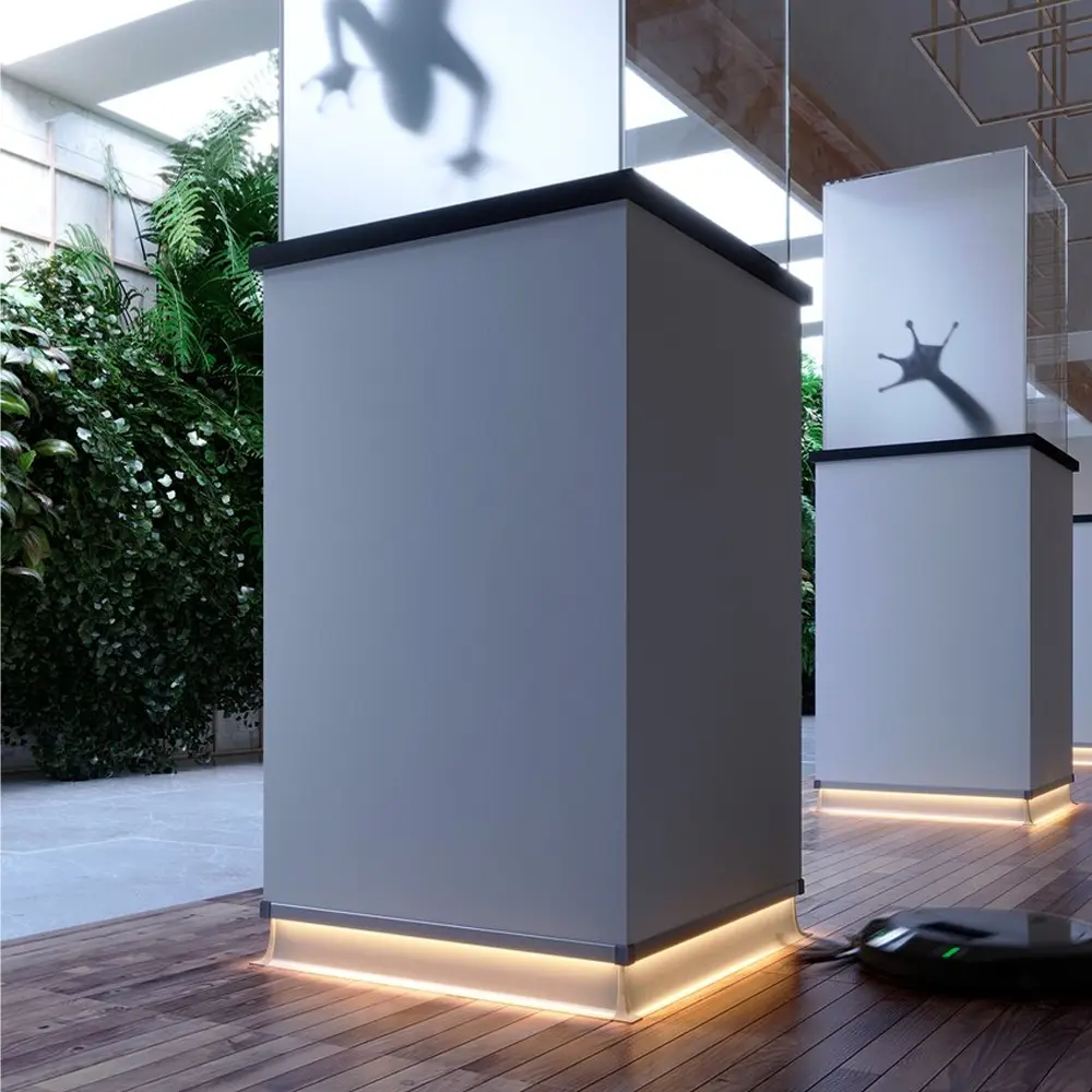 Podświetlana listwa przypodłogowa stosowana jest do maskowania szczelin między ścianą, a podłogą. Posiada zagłębienie ułatwiające dostęp dla odkurzaczy automatycznych oraz przestrzeń na prowadzenie przewodów. Łatwy montaż we wpustach za pomocą klejów montażowych, a także możliwość łączenia profilu w ciągi i systemy sprawiają, że OLIS-K jest jednym z najchętniej wybieranych profili do podświetlania podłogi. Widoczna część profilu jest naturalnym efektem, powstającym w procesie produkcji i nie jest jego wadą.