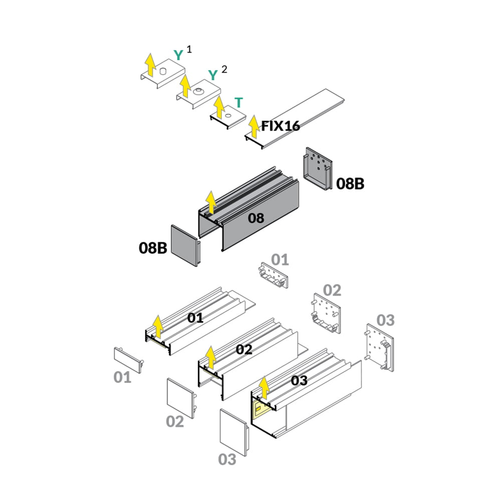 - Wariant 15: Profil aluminiowy FIX16 lub uchwyt "T" oraz profil LED VARIO30-01