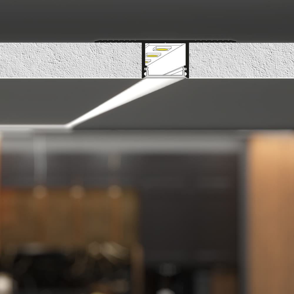Niewielki gabaryt profilu oraz prosta forma znacznie poszerza możliwości użytkowe i wzornicze. Profil LED do zabudowy PLANE14 IN może zostać zamontowany za pomocą wkrętów do powierzchni montażowej pomiędzy płytami G-K. W celu uzyskania pełnej estetyki i ochrony, profil do taśmy LED powinien zostać zakończony zaślepkami.