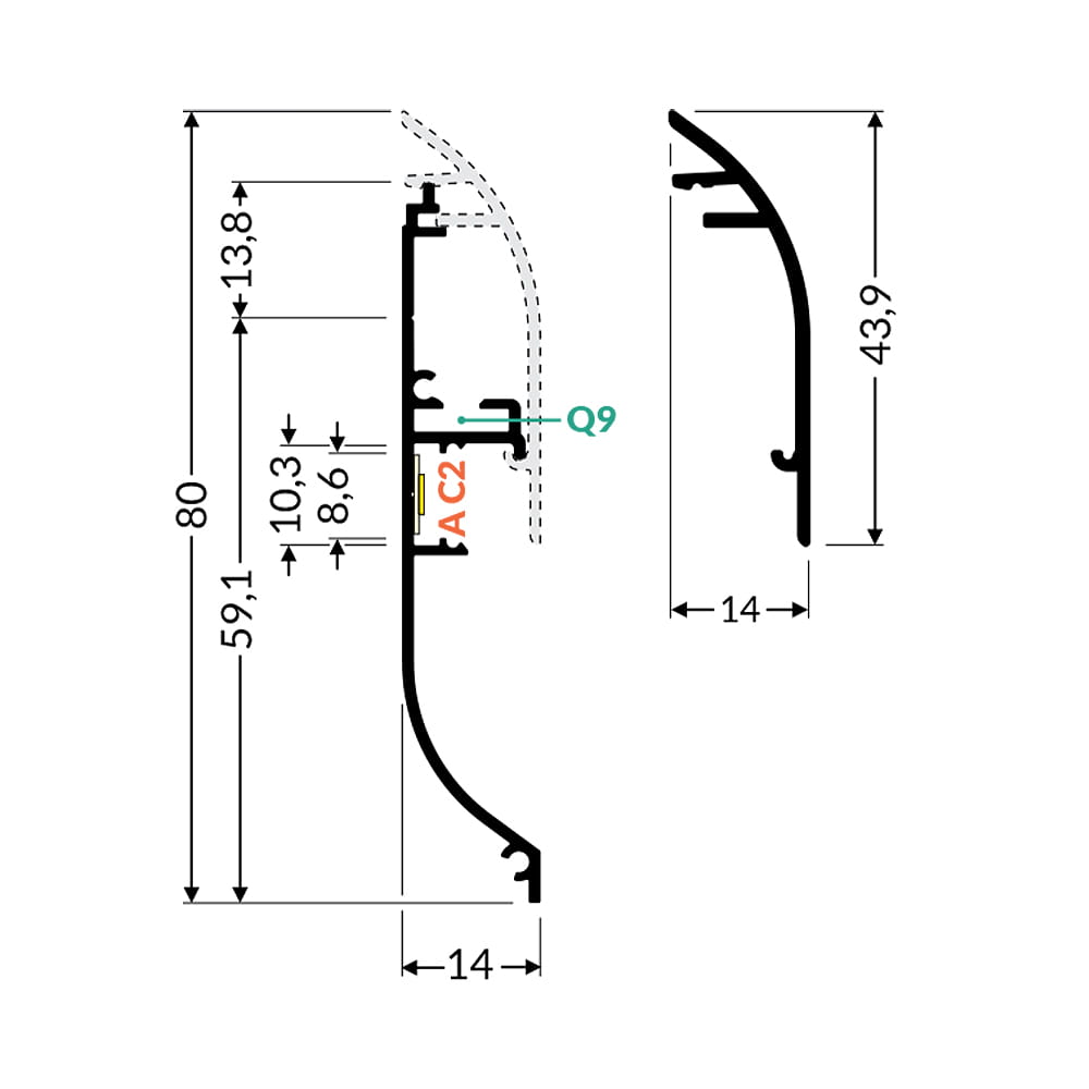 Przypodłogowy profil aluminiowy LED SKIRT10 wykonany z aluminium malowanego proszkowo w dowolnie wybranym kolorze z palety barw RAL. Listwa aluminiowa SKIRT10 sprawdzi się idealnie jako oświetlenie przypodłogowe w pomieszczeniach oraz ciągach komunikacyjnych. Listwa LED dzięki swej budowie montowana jest bezpośrednio do ściany, co pozwala na szersze spektrum zastosowania, a także nadanie pomieszczeniu innowacyjnego wyglądu.