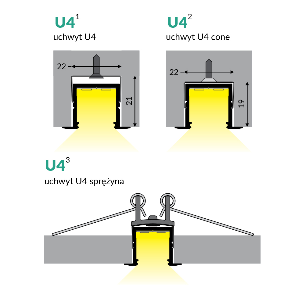 | Kompatybilne uchwyty | uchwyt/y "U4" |