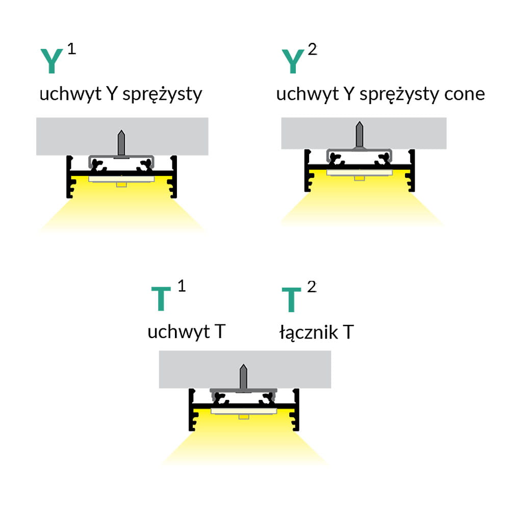 | Kompatybilne uchwyty | uchwyt/y "Y" / uchwyt "T prosty" |