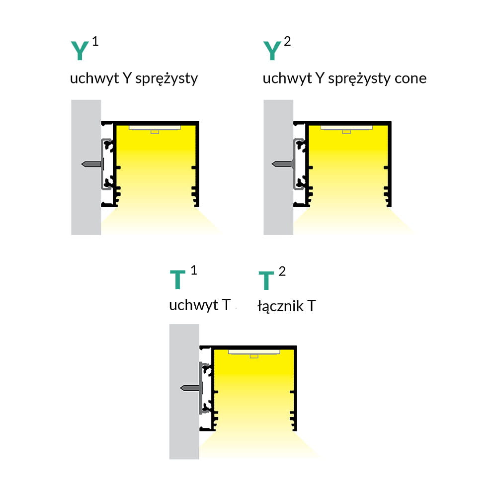 Przedstawione powyżej warianty nie wchodzą w skład zestawu z profilem, każdy komponent w postaci profilu, osłony, uchwytu czy zawiesia należy zakupić osobno lub skorzystać z gotowych wariantów dostępnych na sklepie.