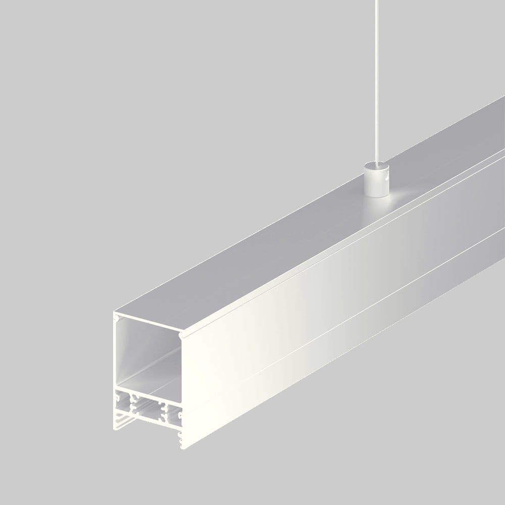 - Klosz E9 "Mleczny" - (transparentność 70%) - klosz zatrzaskowy, wciskany do profilu. Wersja mleczna klosza tworzy efekt jednolitej poświaty (niewidoczne diody taśmy LED), a także niweluje efekt olśnienia. Ogromnym atutem klosza jest jego budowa w kształcie "kwadratowej tuby" - pozwalająca zwiększyć możliwości użytkowe profilu i wykorzystać go m.in. jako nowoczesną - minimalistyczną lampę.