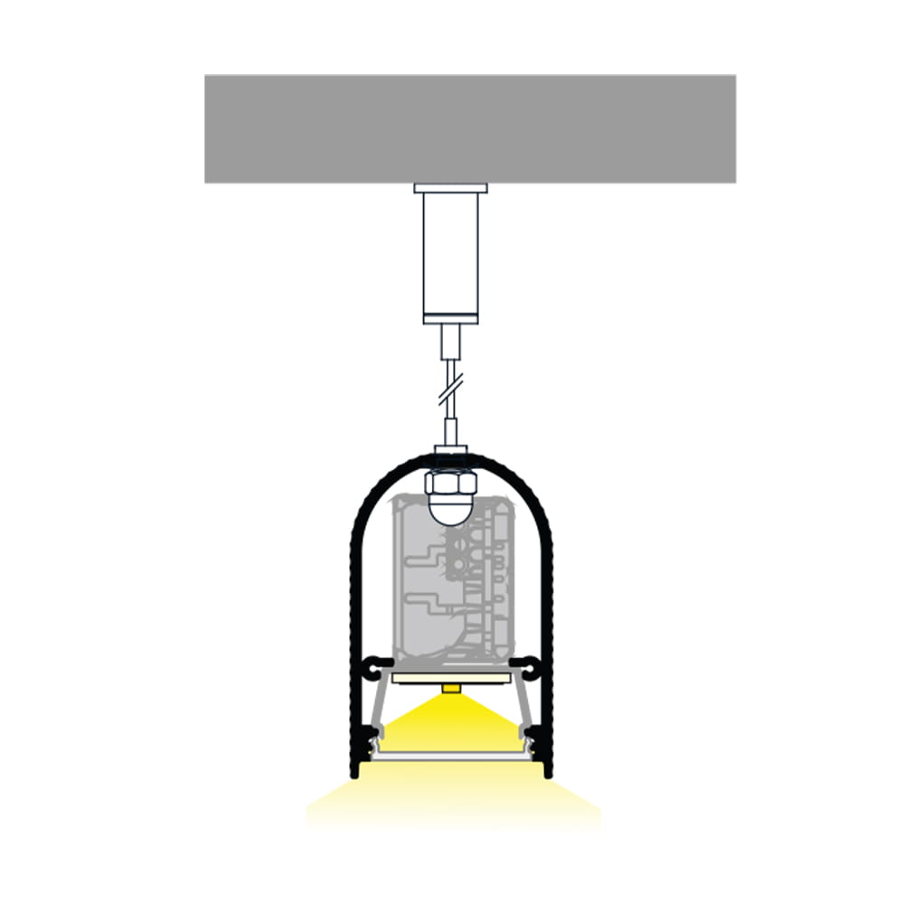 Rozmiar profilu wiszącego oraz prosta forma znacznie poszerza możliwości użytkowe i wzornicze. Profil LED NAMI23 może zostać zamontowany za pomocą dedykowanych zawiesi regulowanych lub zawiesi zasilających SELV. Dodatkowy profil uzupełniający NAMI23, pozwala na estetyczne zamocowanie taśmy bądź modułu LED oraz oddzielenie źródła światła z dostępnym wyżej miejscem na schowanie zasilacza bądź przewodów.
