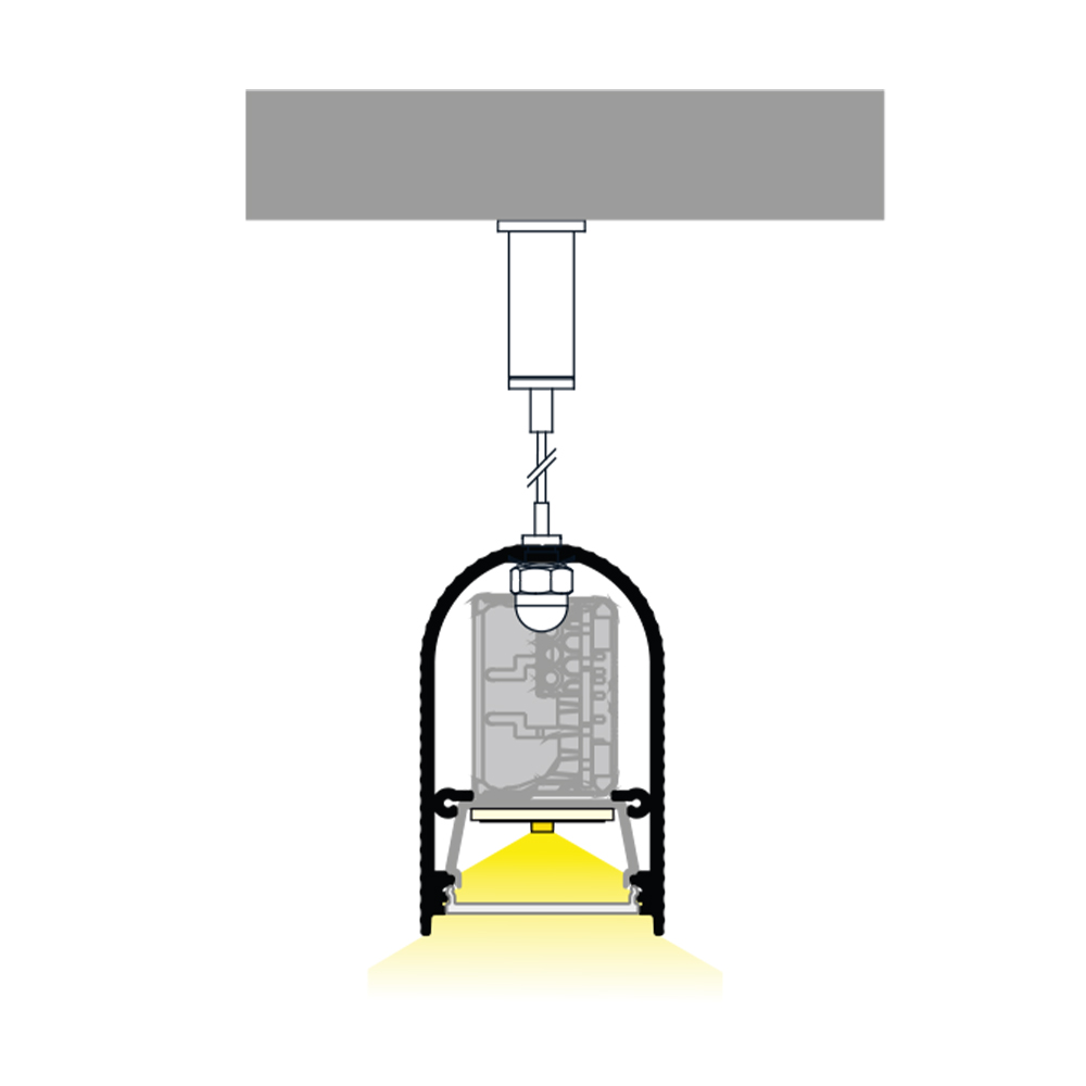 NAMI23 to uniwersalny profil LED aluminiowy, który może być stosowany jako oprawa wisząca LED. Doskonale sprawdza się w nowoczesnych wnętrzach mieszkalnych, biurach, hotelach, galeriach handlowych i restauracjach, gdzie liczy się zarówno funkcjonalność, jak i estetyka wykonania. Profil można łatwo zamontować przy użyciu zawiesi montażowych, które dostępne są w zakładce „Produkty powiązane”.