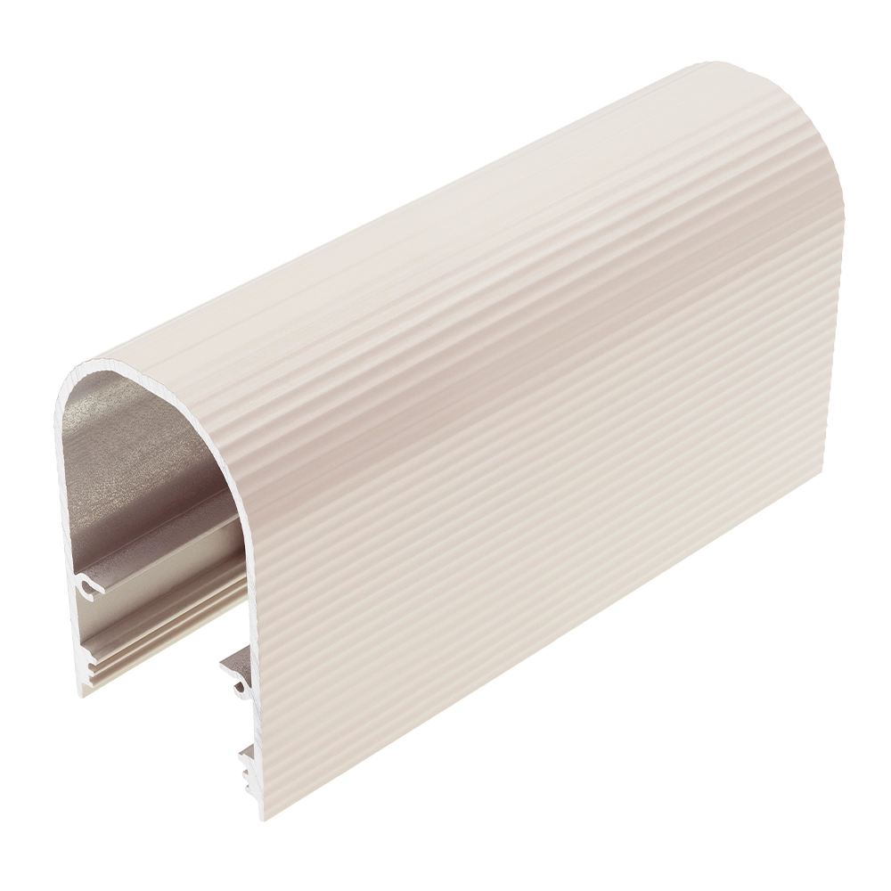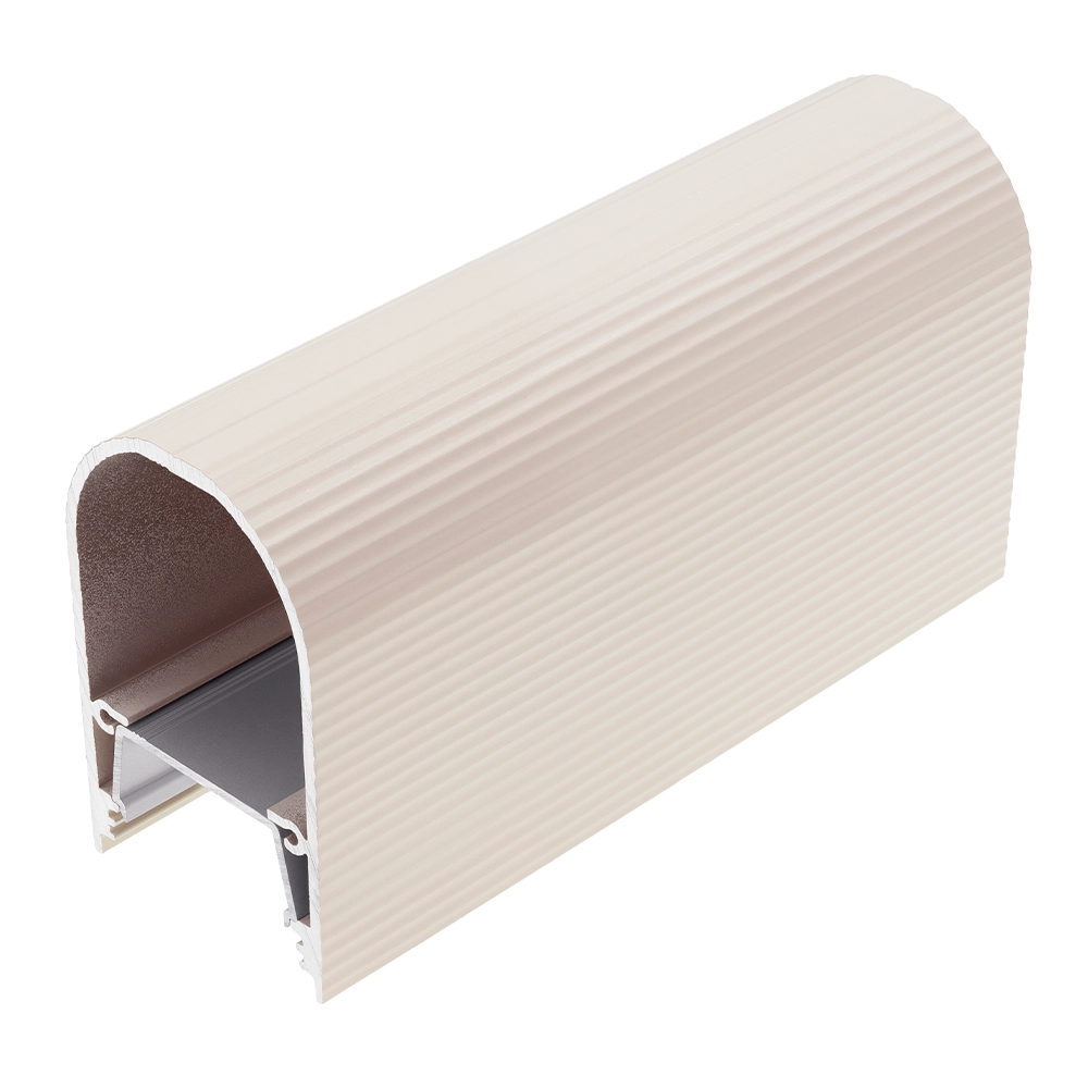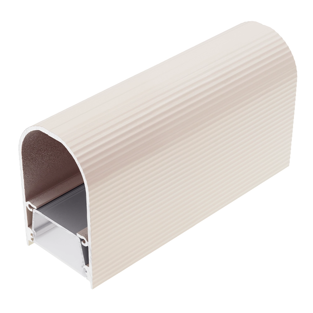 - Klosz D9 "Mleczny" - (transparentność 70%) - klosz zatrzaskowy, wciskany do profilu. Wersja mleczna klosza tworzy efekt jednolitej poświaty (niewidoczne diody taśmy LED), a także niweluje efekt olśnienia. Ogromnym autem klosza jest jego budowa w kształcie "tunelu" - pozwalająca zwiększyć możliwości użytkowe profilu i wykorzystać go mi.in. jako nowoczesną - minimalistyczną lampę.
