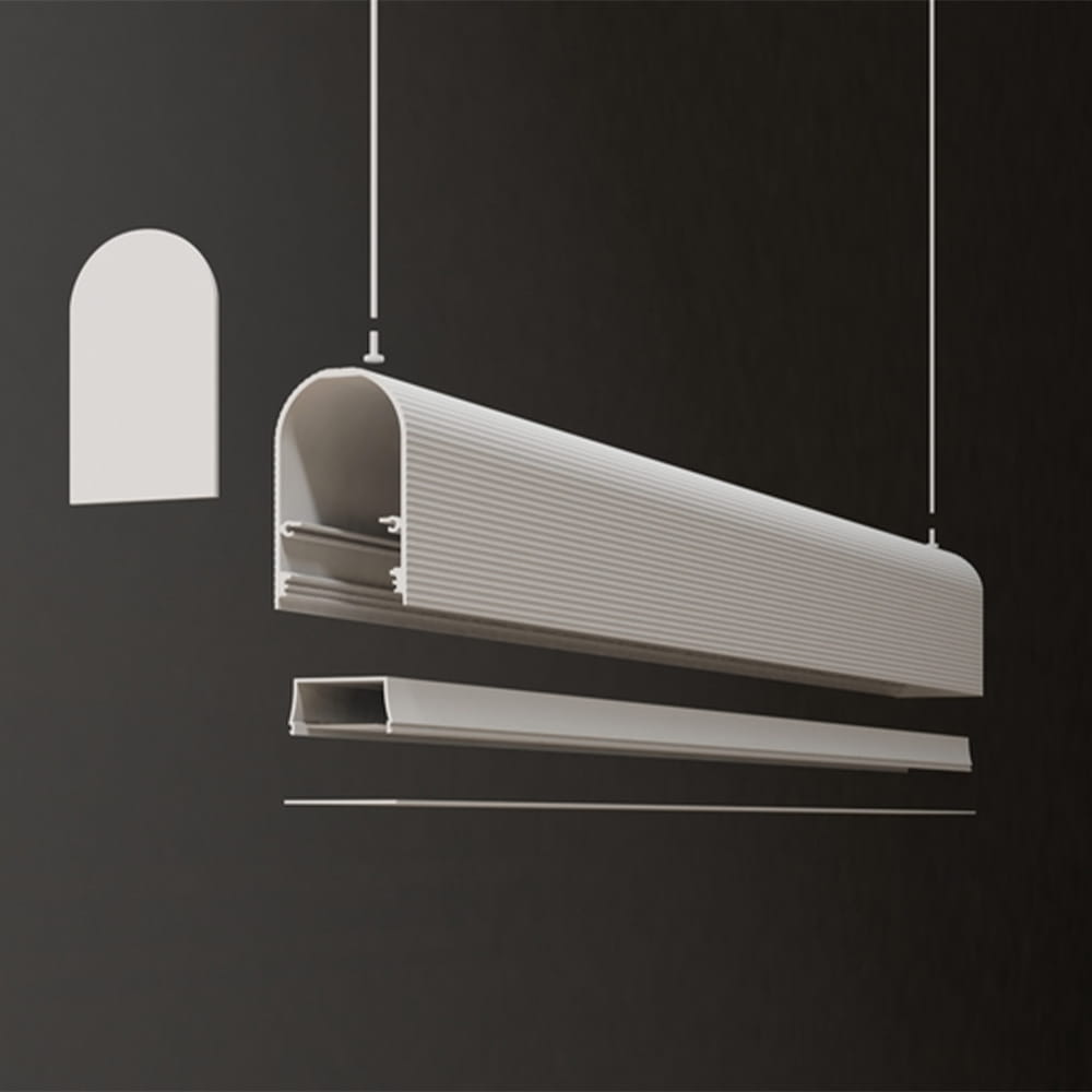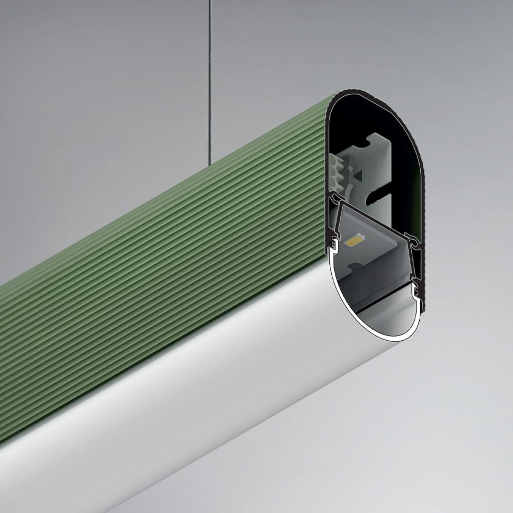 Rozmiar profilu wiszącego, prosta forma znacznie poszerza możliwości użytkowe i wzornicze. Profil LED NAMI23 może zostać zamontowany za pomocą dedykowanych zawiesi regulowanych lub zawiesi zasilających SELV. Dodatkowy profil uzupełniający NAMI23, pozwala na estetyczne zamocowanie taśmy bądź modułu LED oraz oddzielenie źródła światła z dostępnym wyżej miejscem na schowanie zasilacza bądź przewodów.
