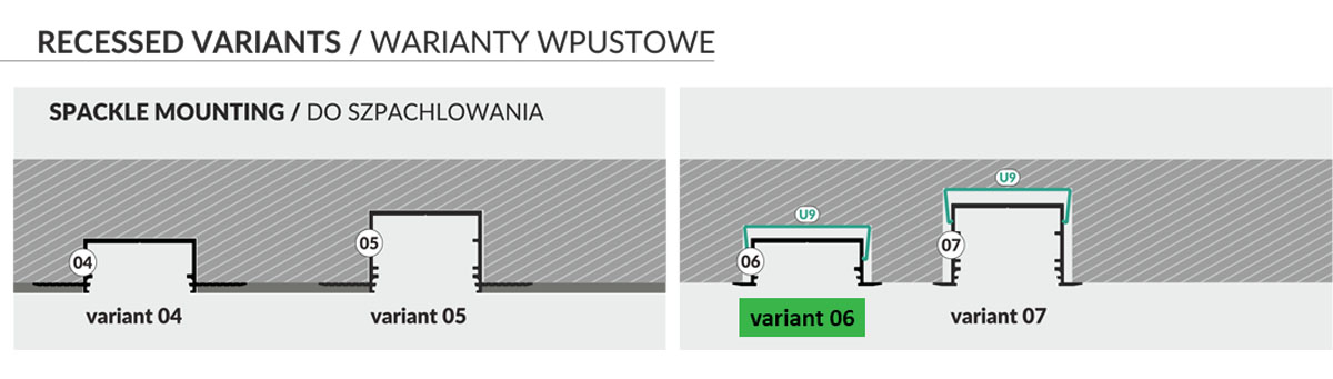Wpustowe warianty profili LED systemowych VARIO30