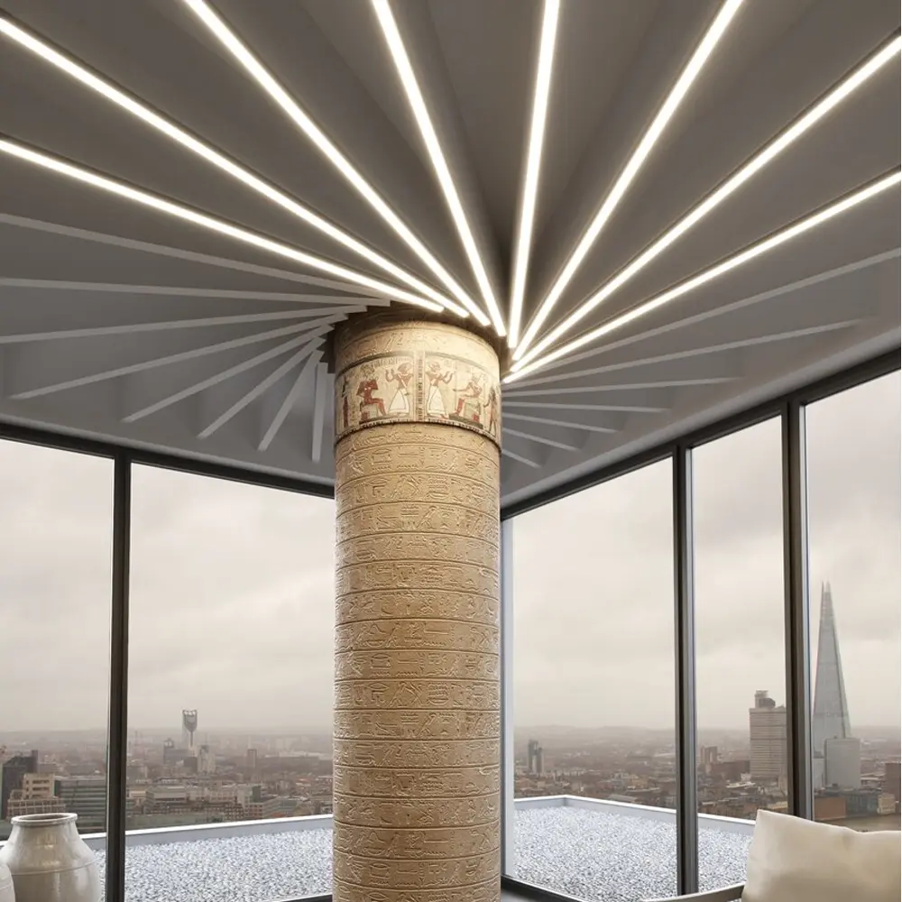 Listwa techniczna wyróżnia się możliwością łączenia jej w ciągi za pomocą łączników kątowych ZM NA (120°), łączników kątowych ZM (45°, 60°, 90°, 120° , 135° i 180°) oraz łączników giętych ZM-PION - w płaszczyźnie pionowej (45°, 60°, 90°, 120° i 135°). Profil zapewnia stabilne i estetyczne zamocowanie w suficie podwieszanym, bez widocznych wystających elementów aluminiowych.