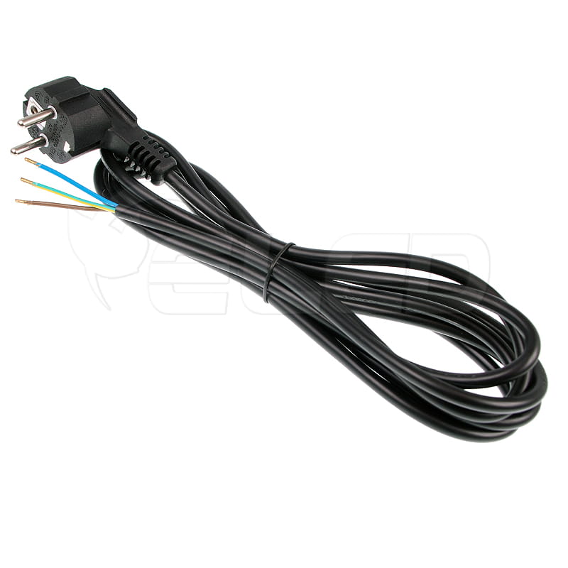 Przewód przyłączeniowy z wtykiem kątowym 3x1mm2 250V AC służący do podłączenia do sieci energetycznej urządzeń elektrycznych.