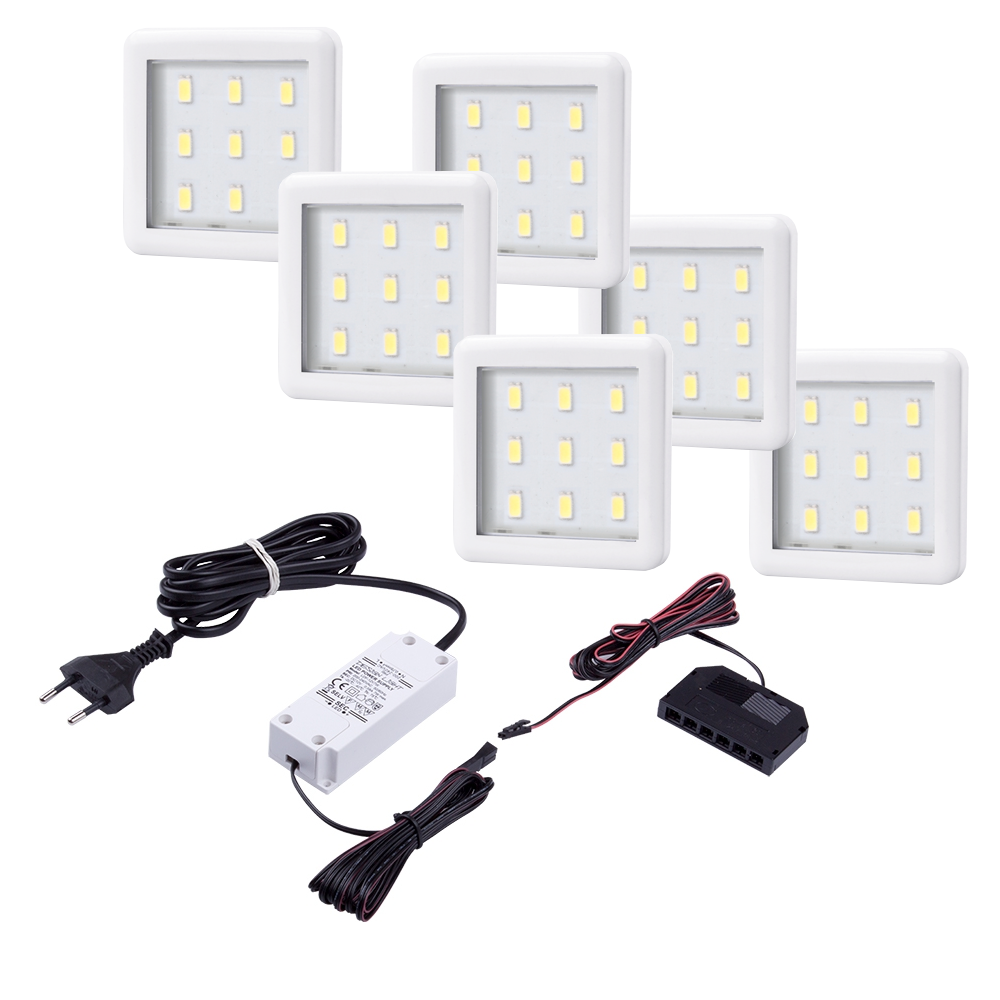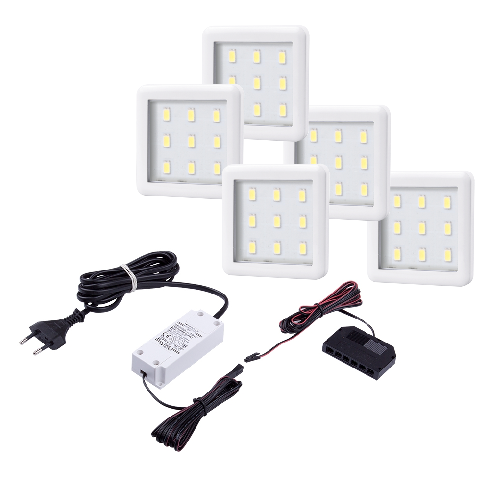 Punktowa oprawa meblowa LED SQUARE3 - Biała - 12V 2,5W + zasilacz - zestaw