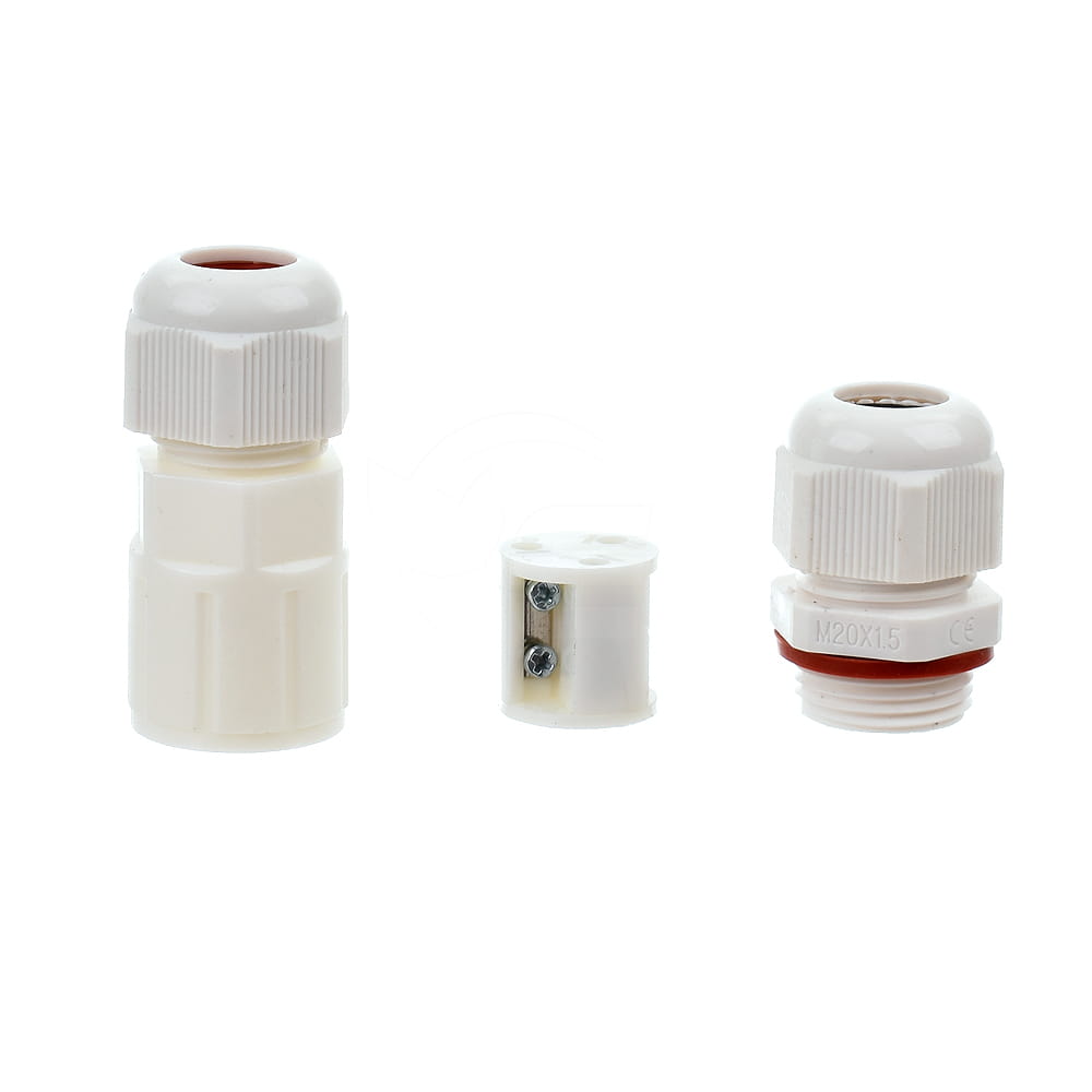 Zewnętrzna puszka (złącze) elektroinstalacyjne z dwoma dławnicami umożliwia łącznie dwóch przewodów bądź wykonywanie przyłączy zasilających.