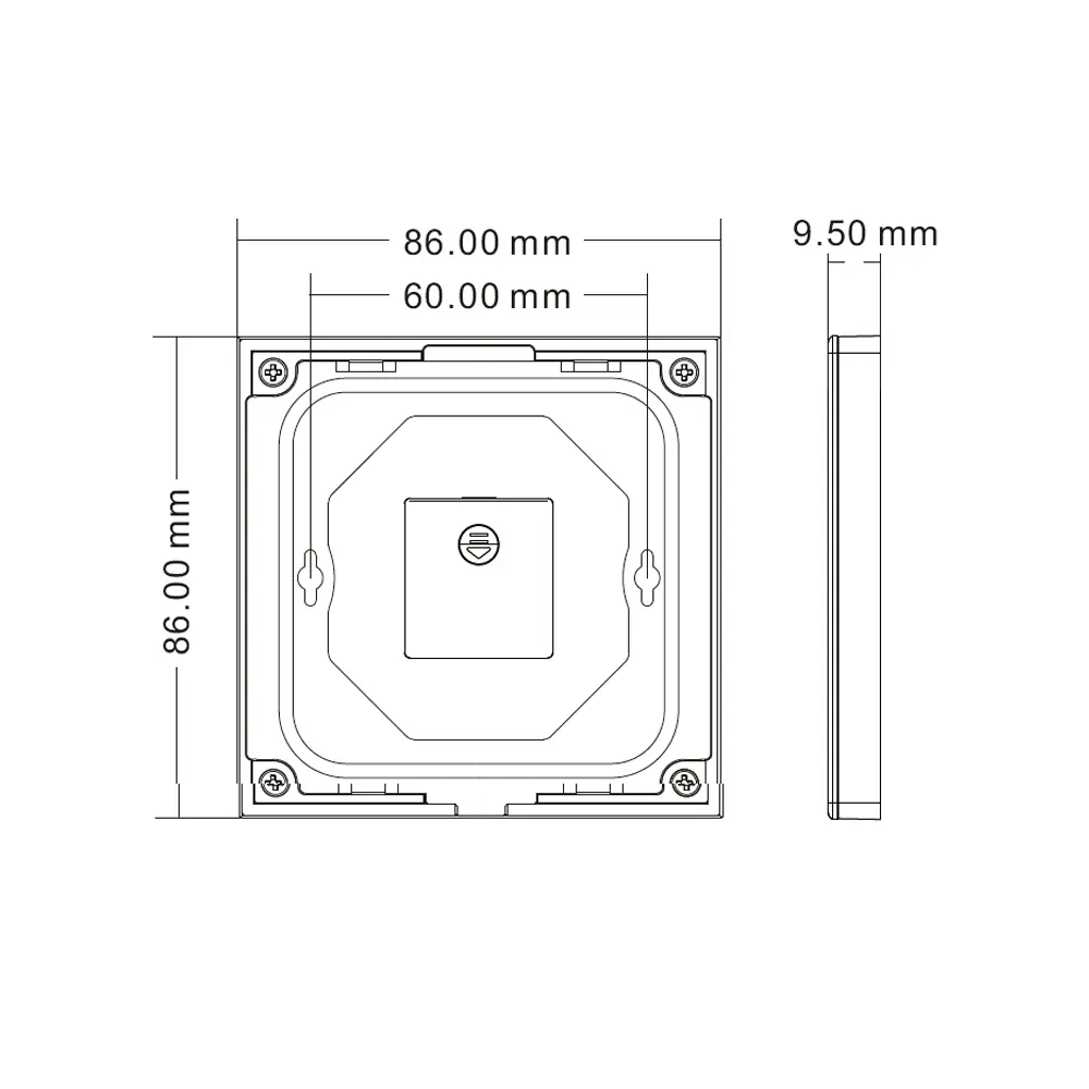 | Wymiary | zestaw: (panel) - 86 x 86 x 9.5 mm / (odbiornik) - 97 x 33 x 18 mm |