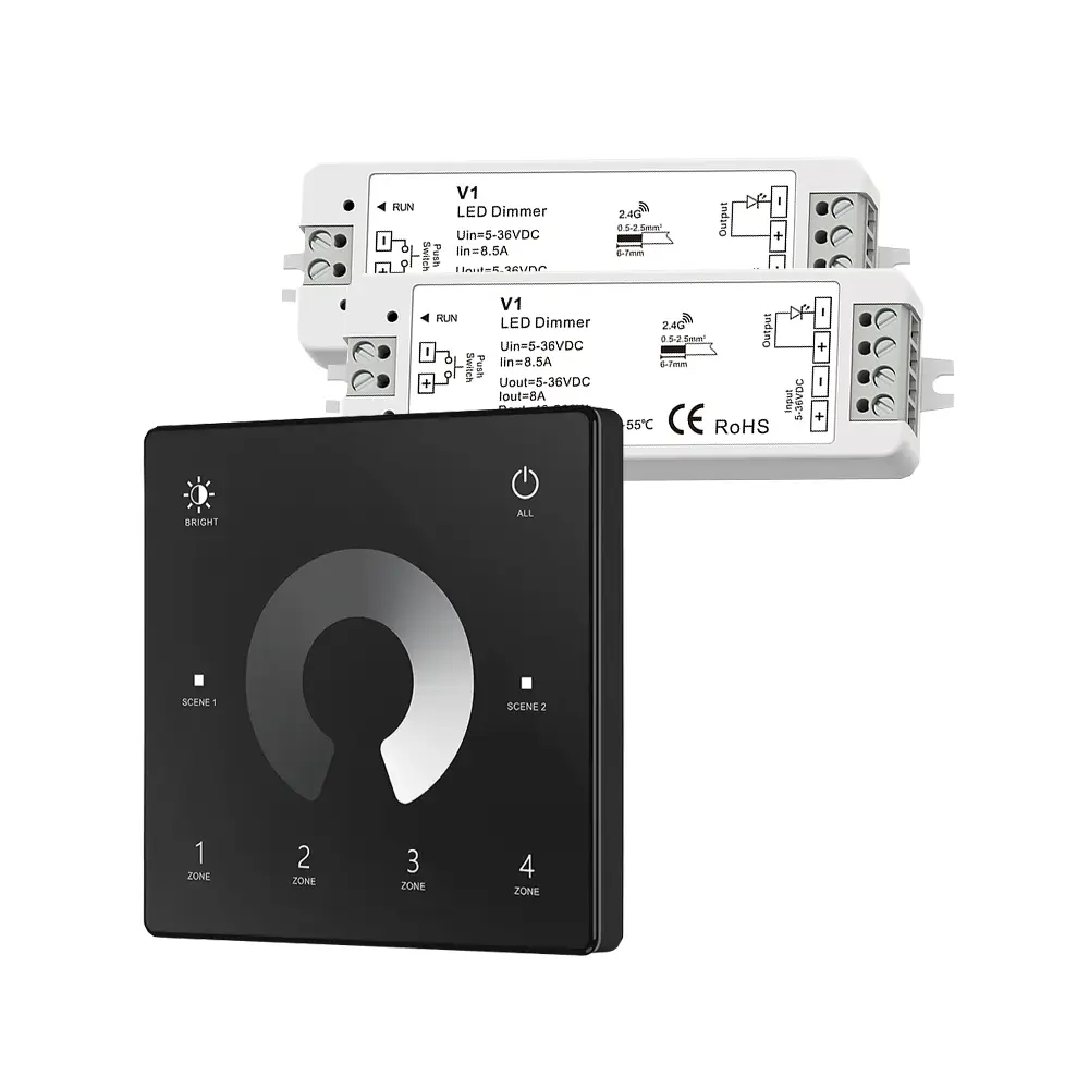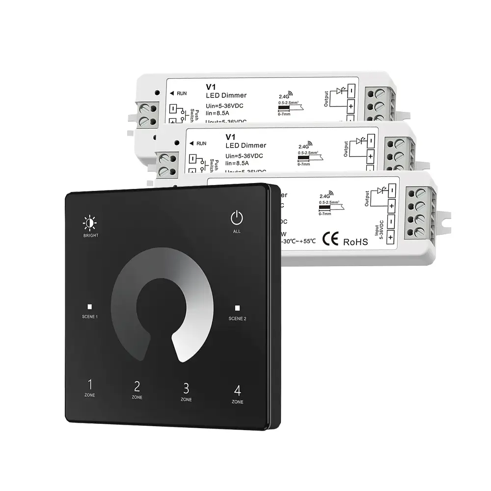 Ściemniacz LED Skydance - Mono - 4 strefowy - Panel naścienny 3V + odbiorniki - czarny zestaw