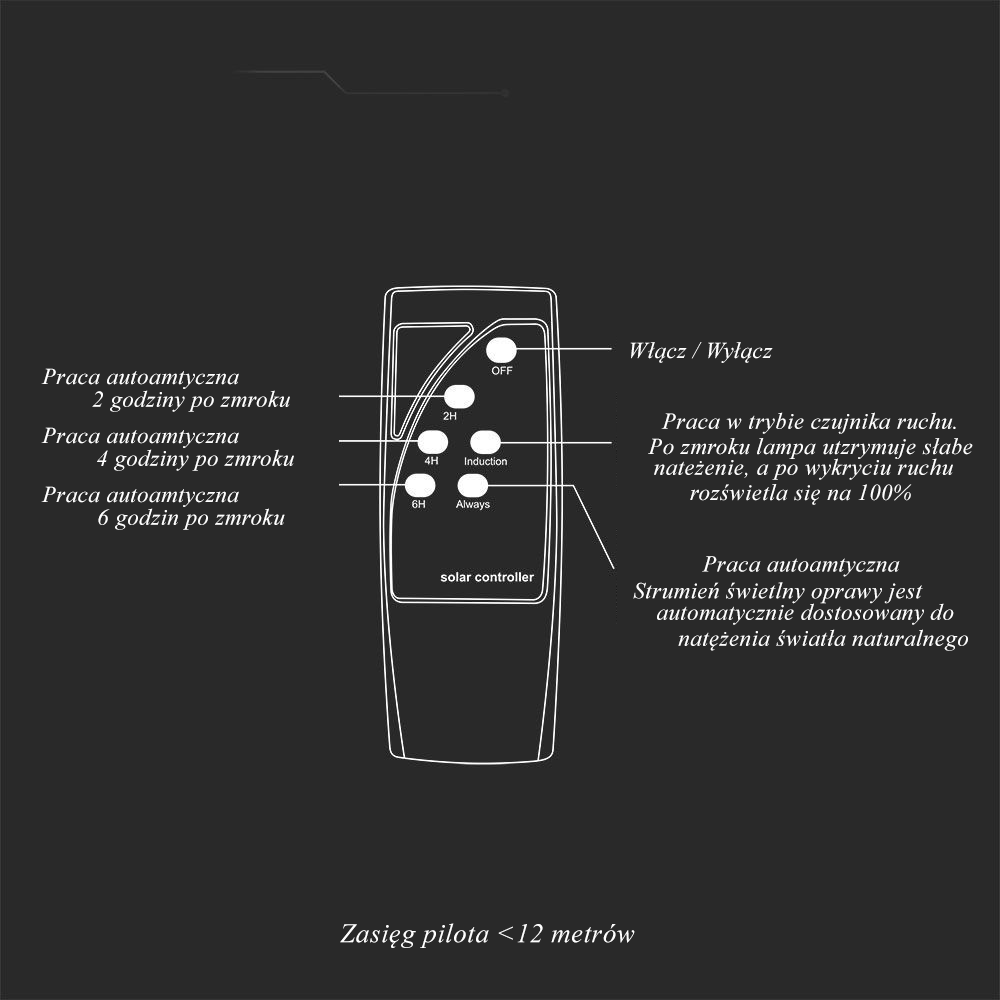 Solarna lampa ogrodowa LED z czujnikiem ruchu 7.5W - VT-45W to idealnie rozwiązanie do oświetlenia miejsc, w których nie ma możliwości podłączenia okablowania elektrycznego. Lampa ogrodowa LED z modułem fotowoltaicznym wykonana została z najwyższej jakości materiałów, posiada podwyższony stopień ochrony (IP65) i odporna jest na niekorzystne warunki atmosferyczne. Lampa LED posiada w zestawie pilot do sterowania. Nadaje się wszędzie tam gdzie brak jest możliwości podpięcia tradycyjnej lampy parkowej / ogrodowej zasilanej z sieci energetycznej. Lampa ogrodowa LED dedykowana pod montaż na słupie / stelażu o średnicy 60mm.