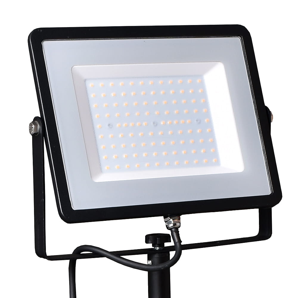 Statyw teleskopowy z naświetlaczem LED 100W (zestaw V-PRO) służący do oświetlenia powierzchni na budowach w warsztatach oraz przy pracach na zewnątrz. Dzięki zastosowaniu naświetlacza LED 100W możemy uzyskać oszczędności sięgające nawet 85% za energię elektryczną w stosunku do opraw halogenowych. Wytrzymała obudowa naświetlacza LED wykonana z stopu aluminium i solidna konstrukcja to gwarancja dobrego sprzętu na lata.