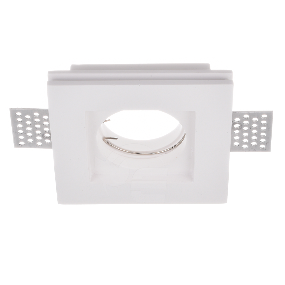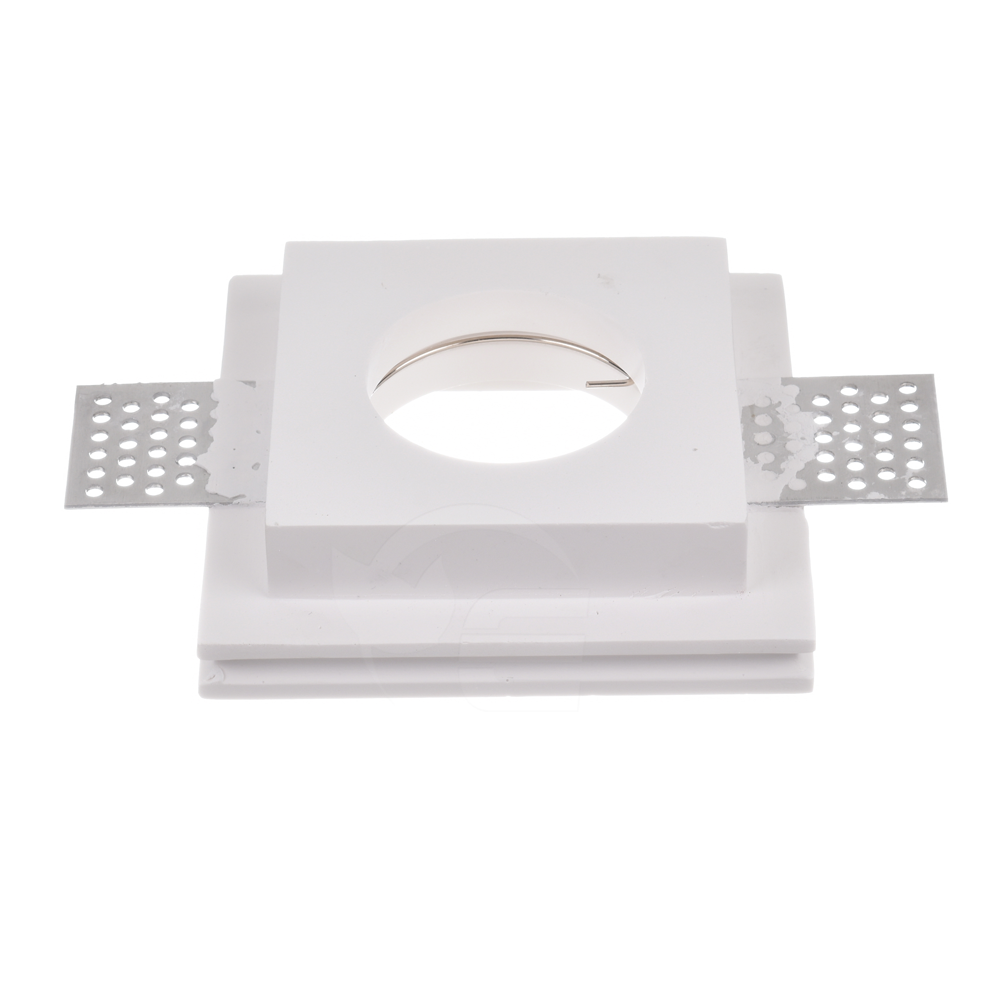 Lampa gipsowa - kwadratowa wykonana z wysokiej jakości gipsu przystosowana do montażu żarówek LED z trzonkiem GU10 o maksymalnej mocy 35W. Oprawa przeznaczona do montażu sufitowego poprzez całkowite jej zabudowanie i zlicowanie z sufitem najczęściej z wykorzystaniem płyt karton - gips.
