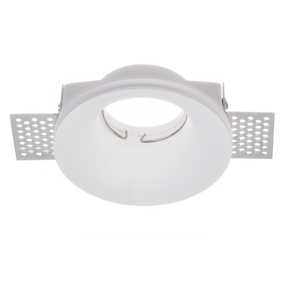 Lampa gipsowa - okrągła wykonana z wysokiej jakości gipsu przystosowana do montażu żarówek LED z trzonkiem GU10 o maksymalnej mocy 35W. Oprawa przeznaczona do montażu sufitowego poprzez całkowite jej zabudowanie i zlicowanie z sufitem najczęściej z wykorzystaniem płyt karton - gips.
