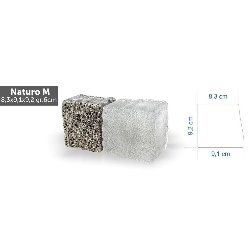 Świecąca kostka brukowa LED to innowatorski rodzaj oświetlenia terenów brukowych i oświetlenia ogrodowego, wzorowany na tradycyjnej kostce brukowej. Model Naturo matowa 8,3x9,2x9,1x6 cm odpowiada swoim kształtem i rozmiarem do standardowych-betonowych kształtów znanych z brukarstwa.