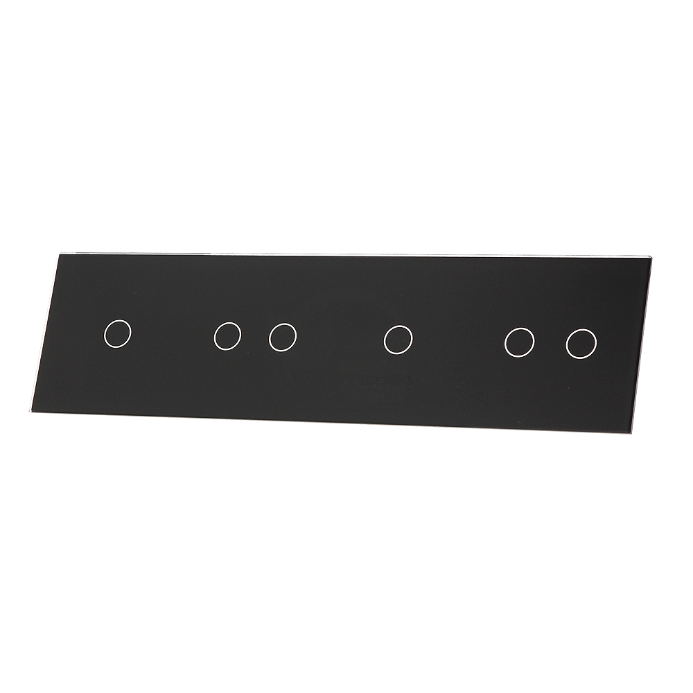 Szklany panel dotykowy poczwórny czarny - 6-sekcyjny - 701212-62 - LIVOLO, to element dedykowany do mechanizmów dotykowych, umożliwiających dotykową kontrole nad podłączonym źródłem światła, wykorzystując przy tym podświetlane pola dotykowe. Szklany panel dotykowy wykonany jest z hartowanego krystalicznego szkła o grubości 4mm, które nadaje elegancji wnętrzom i jest łatwe w utrzymaniu czystości. Dotykowy szklany panel umożliwia kontrole nad sześcioma sekcjami w konfiguracji 1+2+1+2.