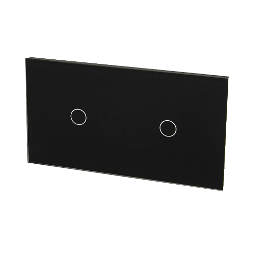 Szklany panel dotykowy podwójny czarny - 2-sekcyjny - TM701701B - TOUCHME, to element dedykowany do mechanizmów dotykowych, umożliwiających dotykową kontrole nad podłączonym źródłem światła, wykorzystując przy tym podświetlane pola dotykowe. Szklany panel dotykowy wykonany jest z hartowanego szkła o grubości 3mm, które nadaje elegancji wnętrzom i jest łatwe w utrzymaniu czystości. Dotykowy szklany panel umożliwia kontrole nad dwiema sekcjami w konfiguracji 1+1.