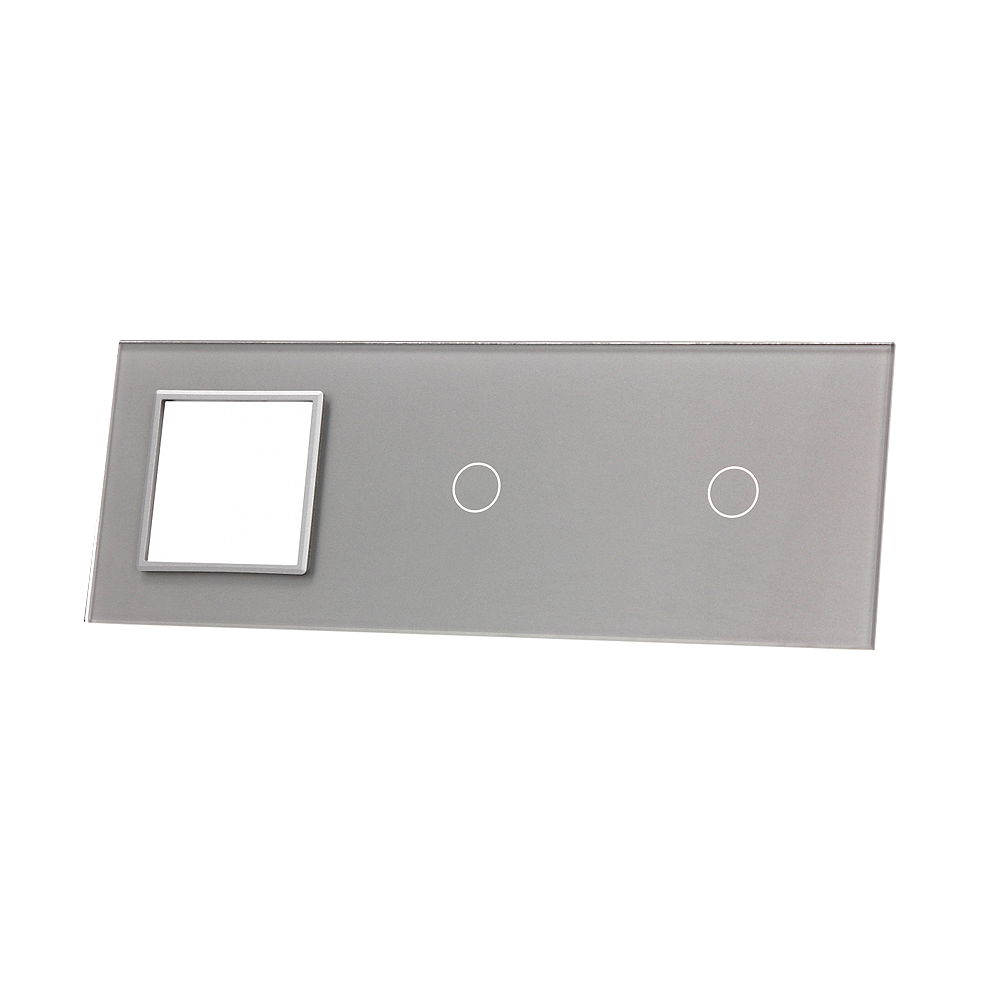 Szklany panel dotykowy potrójny srebrny - 2-sekcyjny + 1 gniazdo - 7011G-64 - LIVOLO