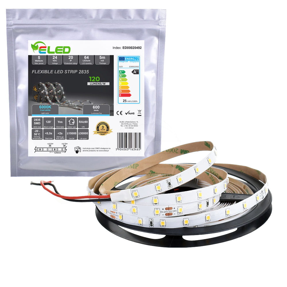 Taśma LED 320 SMD 2835 24V 5W 120lm/W zimna 6000K