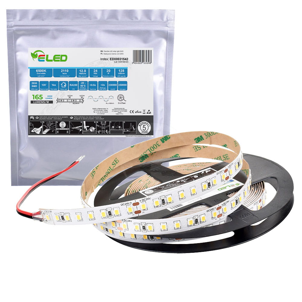 Taśma LED 640 SMD 2835 24V 12.8W 173lm/W zimna 6500K