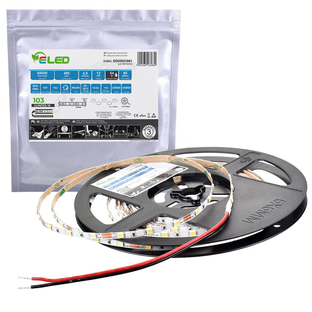 Taśma LED Slim 4.5mm 300 SMD 2835 12V 4.8W 103lm/W zimna 6500K - hermetyczna IP54