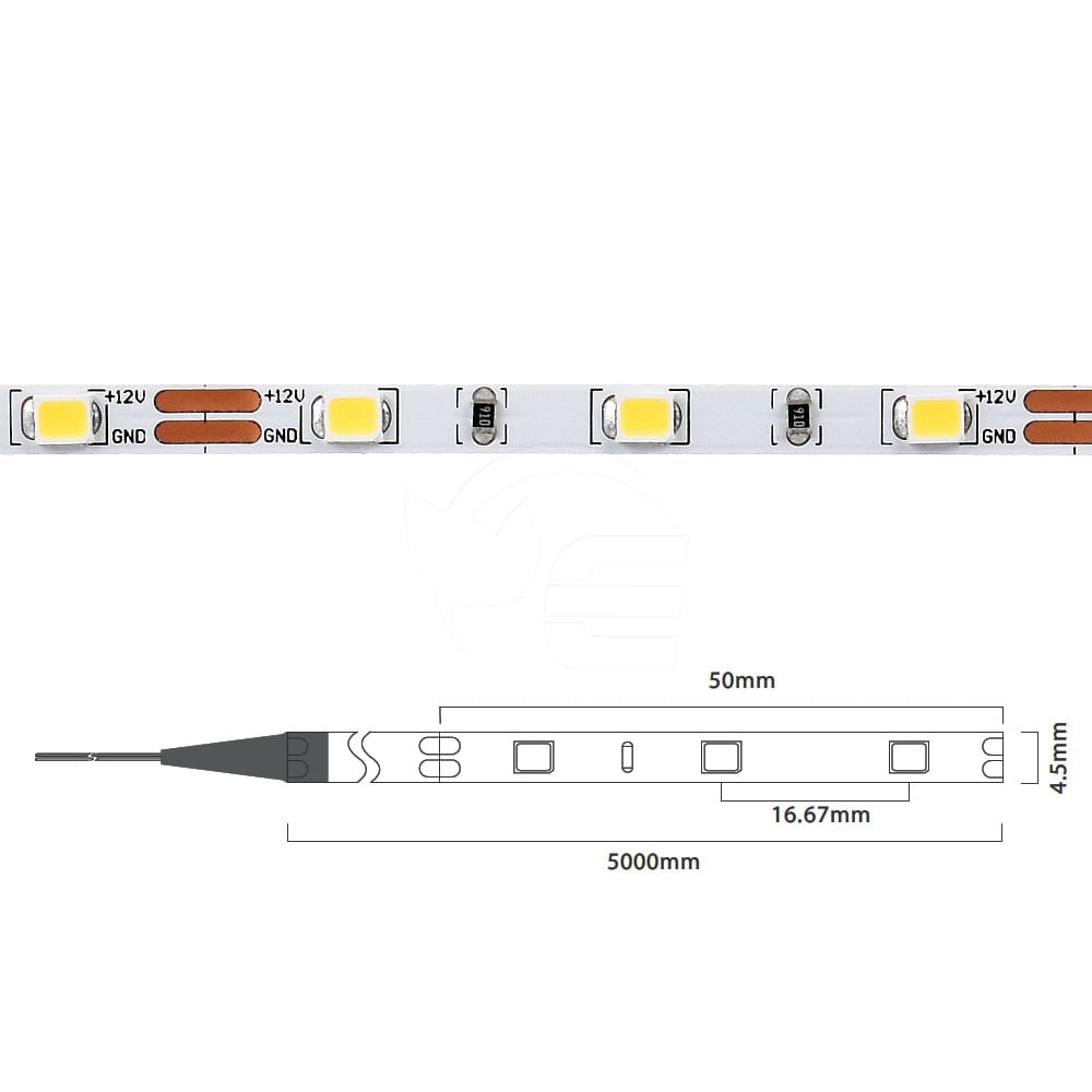 Taśma LED Sim 2835 300 SMD 4.8W 12V IP54 to efektywniejszy zamiennik taśmy LED na diodach LED 3528. Emituje strumień świetlny rzędu 495 lumenów na metr przy niskim poborze mocy. Posiada wysoką wydajność świetlną na poziomie 103lm/W. Główną cechą tej taśmy LED jest szerokość podłoża PCB wynosząca zaledwie 4.5mm, dzięki czemu może być z powodzeniem stosowana w miejscach o utrudnionym dostępie oraz niewielkiej przestrzeni montażowej.