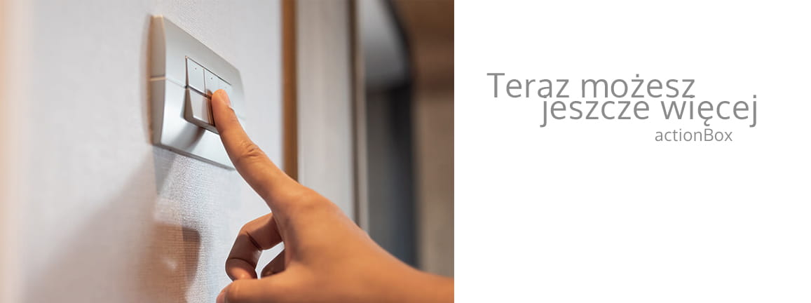 Sterownik actionBox jest w stanie obsłużyć do 30 akcji na jednym urządzeniu. Pozwala to na duże możliwości konfiguracyjne stworzone z myślą o automatyzacji procesów w naszym domu. To jaką konkretnie funkcje będzie pełnił actionBox zależy tylko od nas. Możemy go wykorzystać do załączania/wyłączania światła bądź dowolnego urządzenia z użyciem switchBoxa, otwierania/zamykania rolet przy pomocy shutterBoxa, czy ściemniania/rozjaśniania taśmy LED z wykorzystaniem wLightBox'a bądź by wszystkie wyżej wymienione czynności były załączane razem, poprzez jedno naciśniecie włącznika.
