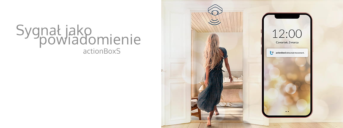ActionBox możesz wykorzystać również w czynnym, funkcjonalnym celu. Podłączając np. czujnik ruchu, możesz ustawić dowolne akcje, które zostaną uruchomione zaraz po tym jak czujnik wykryje ruch. Możesz tym samym łatwo załączyć oświetlenie posesji czy ogrodu. A wszystko to bez prowadzenia dodatkowych przewodów.