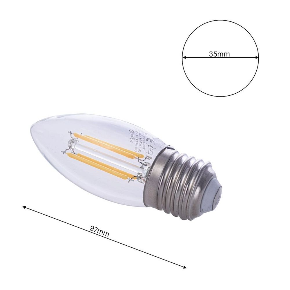 Żarówka dekoracyjna LED E27 C37 4W biała ciepła 2700K - Filament - EKZF003