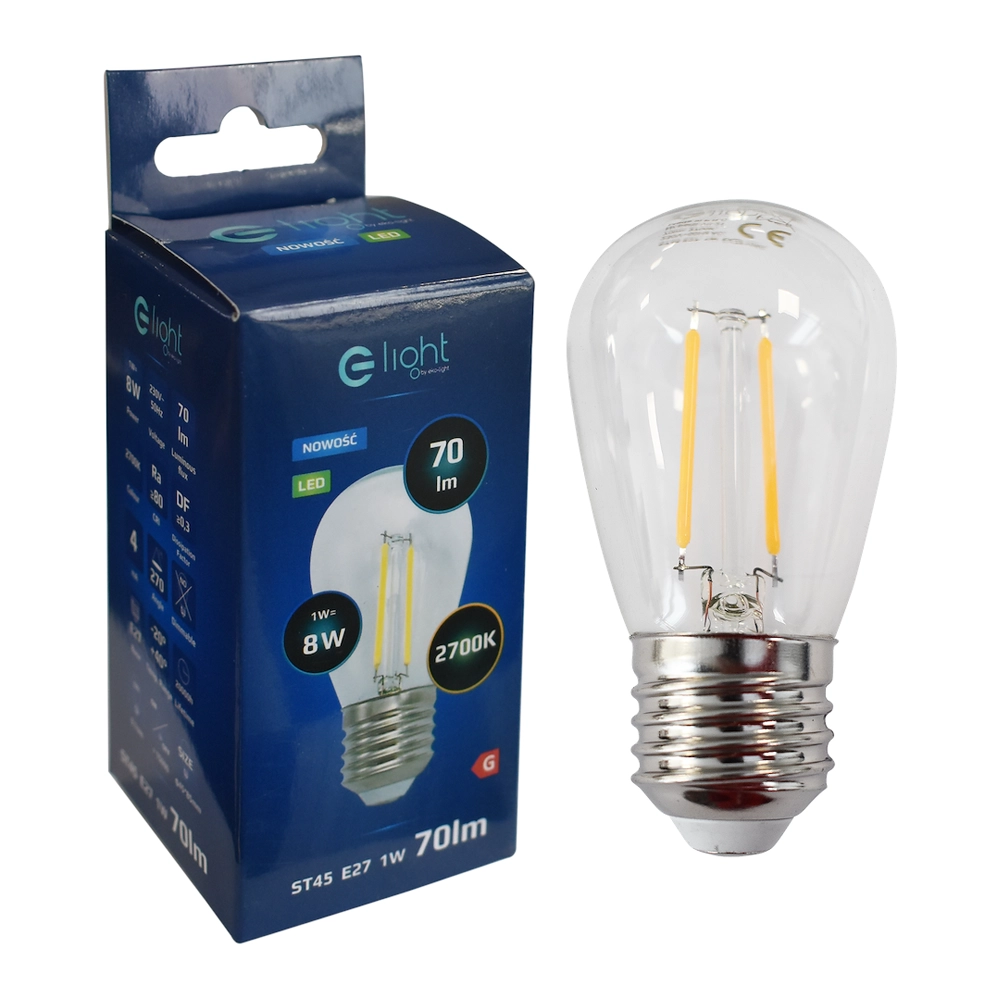 - Girlandy ogrodowe i tarasowe: Dzięki gwintowi E27 i kompaktowemu rozmiarowi (ST45 jest mniejsza od standardowych żarówek), idealnie mieści się w oprawkach girland. Strumień 70 lumenów pozwala na zawieszenie wielu punktów świetlnych obok siebie, tworząc "świetlny sznur", który nie razi w oczy podczas kolacji pod gołym niebem.