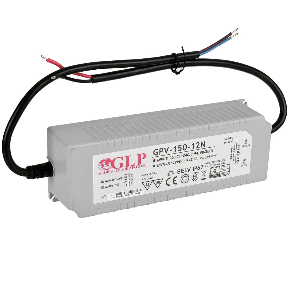 Zasilacz napięciowy w hermetycznej obudowie IP67 12V DC 12.5A 150W GPV-150-12N, marki Global Leader Power sprawdzi się w wielu wymagających aplikacjach gdzie wymagane jest spełnienie restrykcyjnych norm Emisji EMC oraz norm Bezpieczeństwa. Przeznaczone są one do pracy w systemach oświetleniowych oraz w systemach elektroniki przemysłowej. Zaimplementowane moduły zabezpieczeniowe oraz wydajny system chłodzenia zapewniają bezawaryjną stabilność oraz ciągłość pracy.