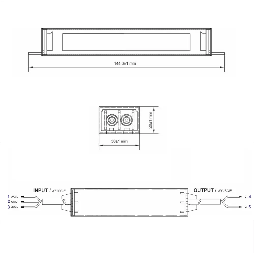 | Wymiary (dł. x szer. x wys.) | 144.3 x 30 x 20 mm |