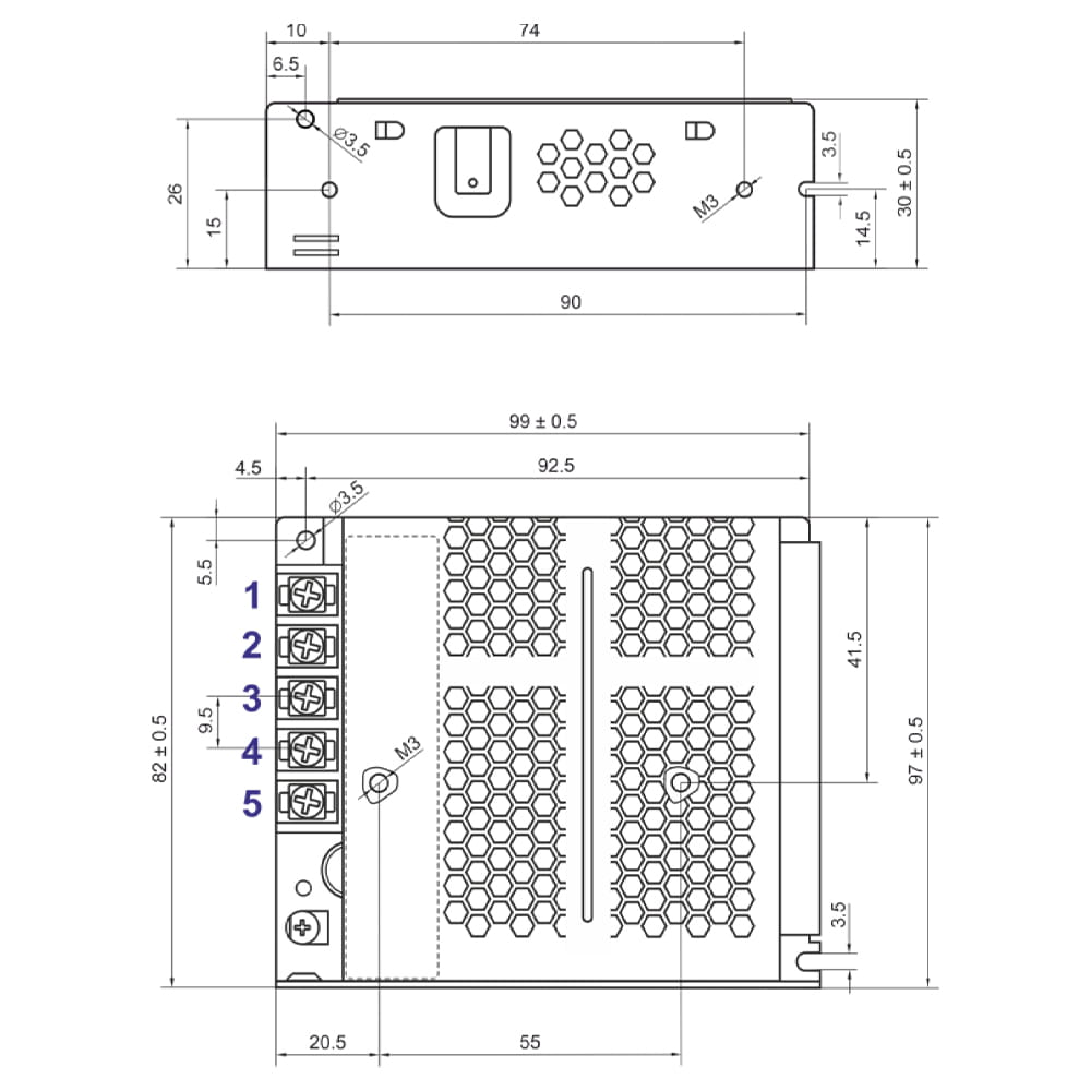 - Uniwersalny zakres wartości napięcia wejściowego (90 ÷ 264VAC)