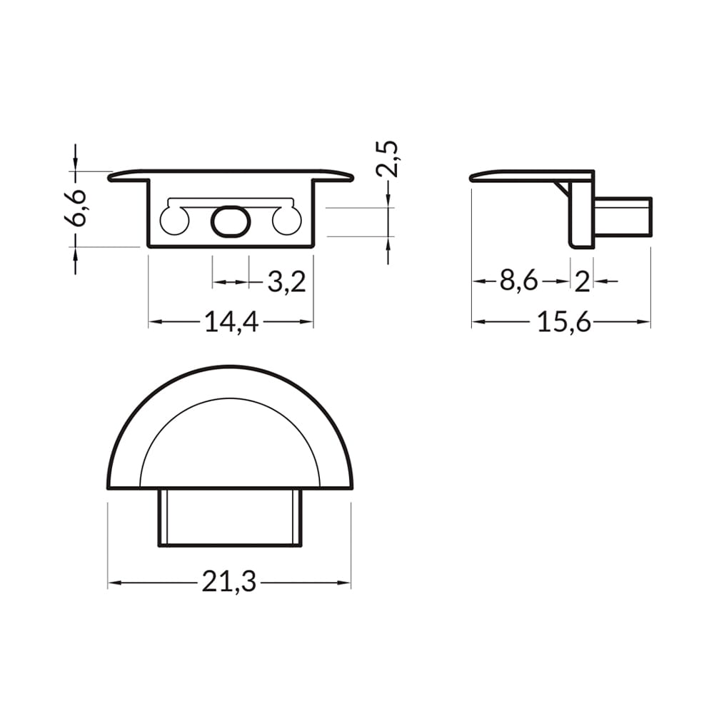 Szerokość zaślepki zwiększa długość profilu.